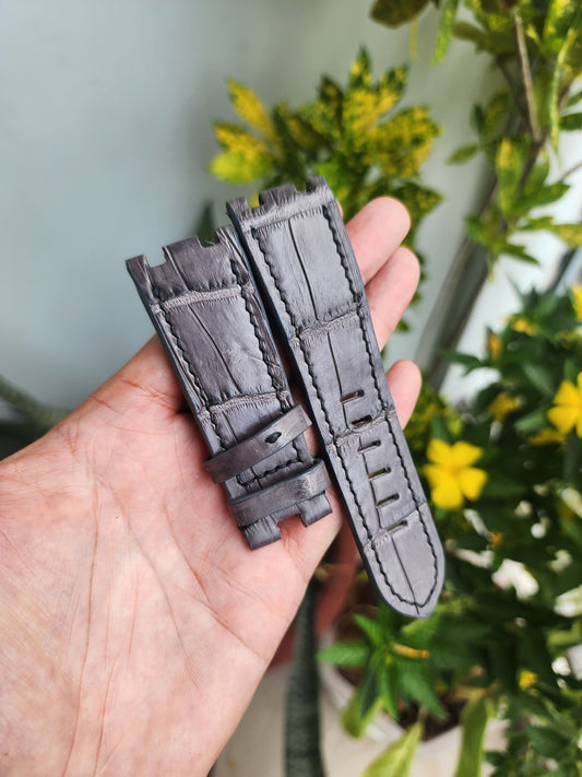 28/24 MM Gray Genuine Crocodile Leather Skin Watch strap band AP 42mm Royal Oak Offshore