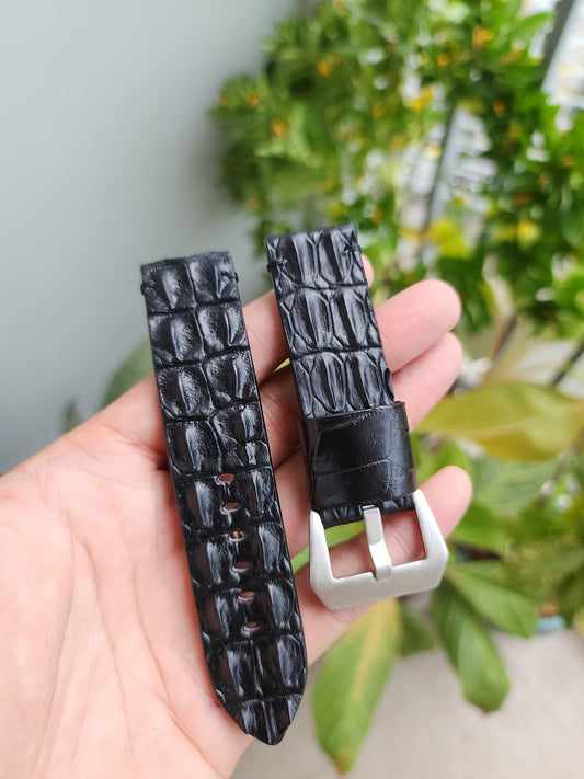Black Genuine Exotic Hornback Crocodile Leather Skin Watch strap band