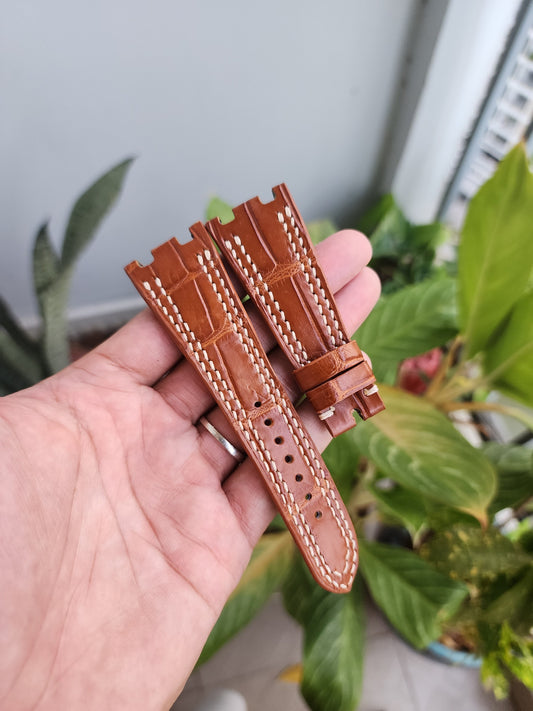 28/18MM Tan Brown Genuine Crocodile Leather Skin Watch strap band AP 42mm Royal Oak Offshore