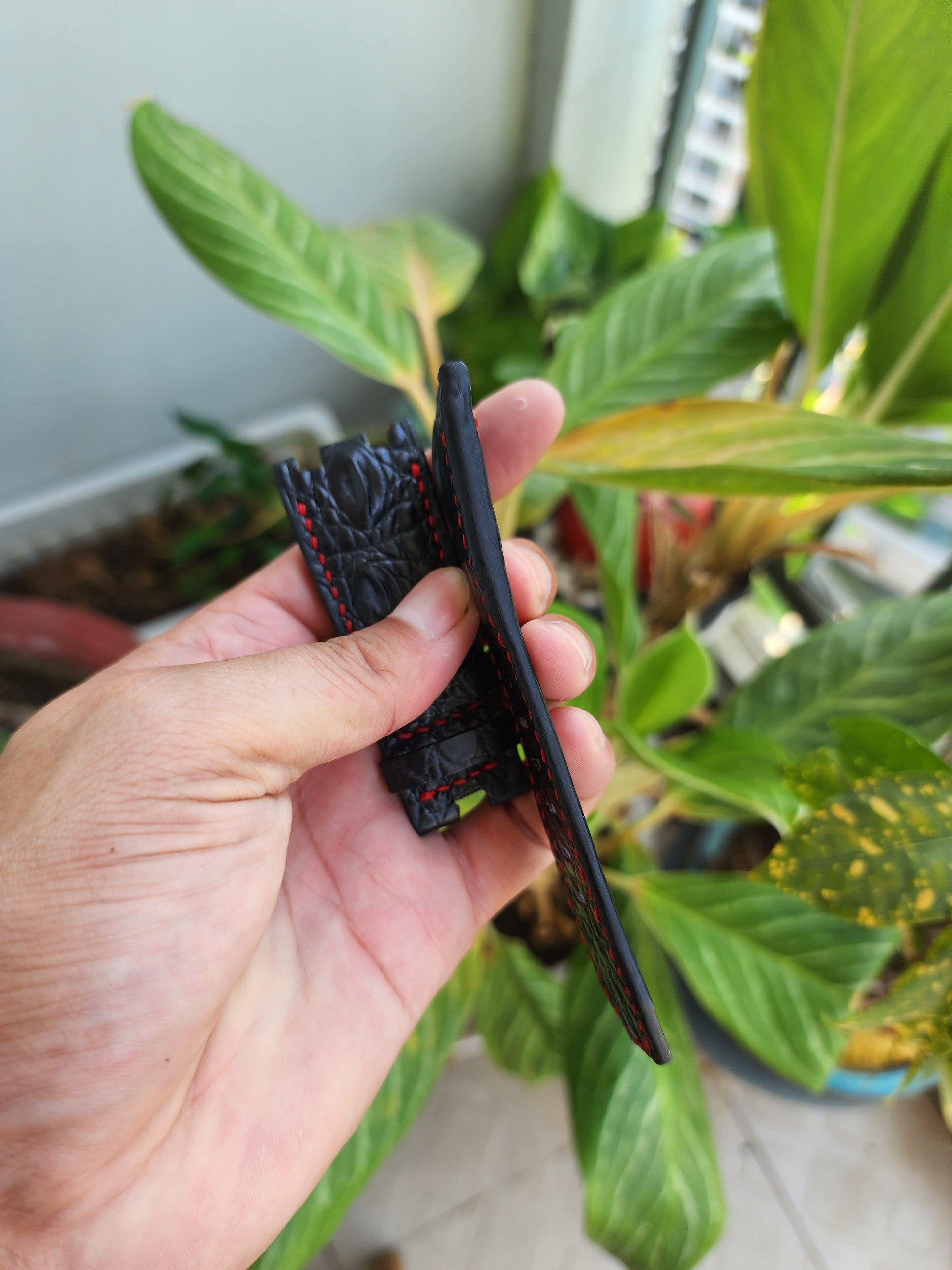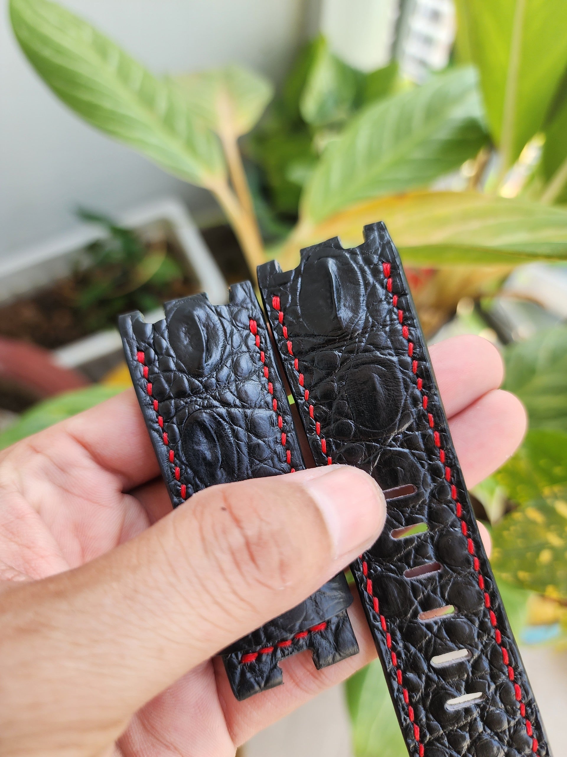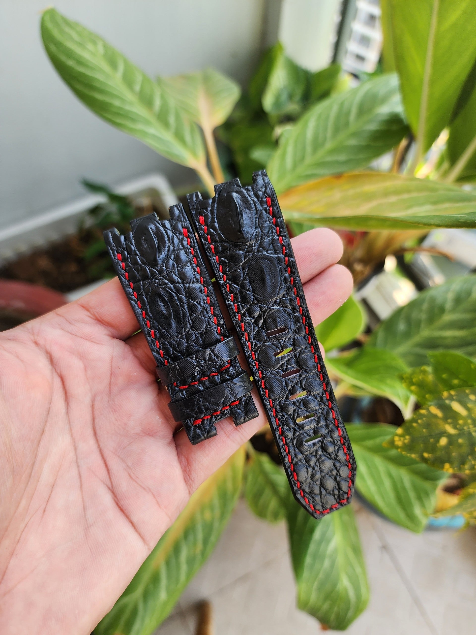 28/24 MM Black Genuine Crocodile Leather Skin Watch strap band AP 42mm Royal Oak Offshore