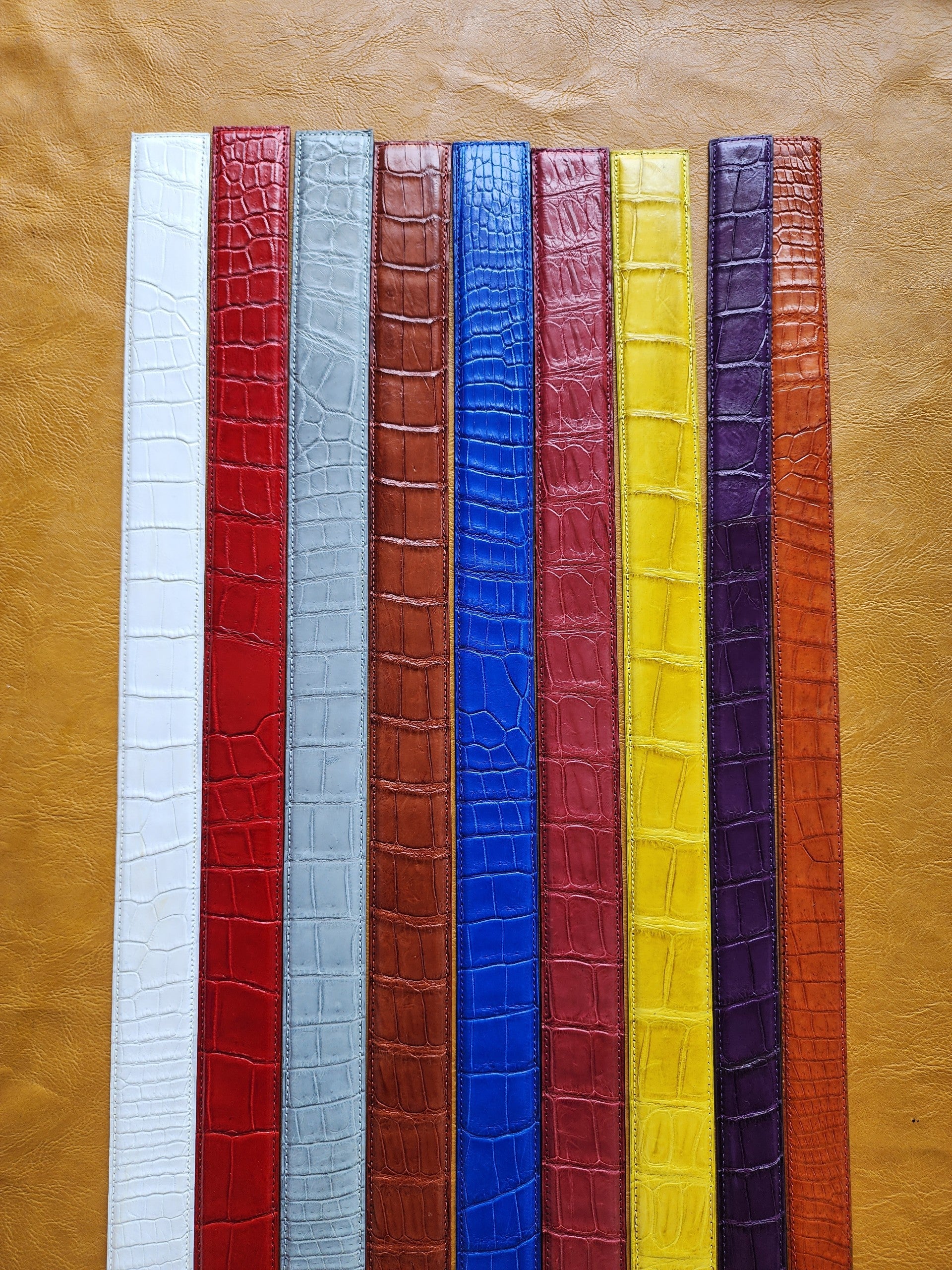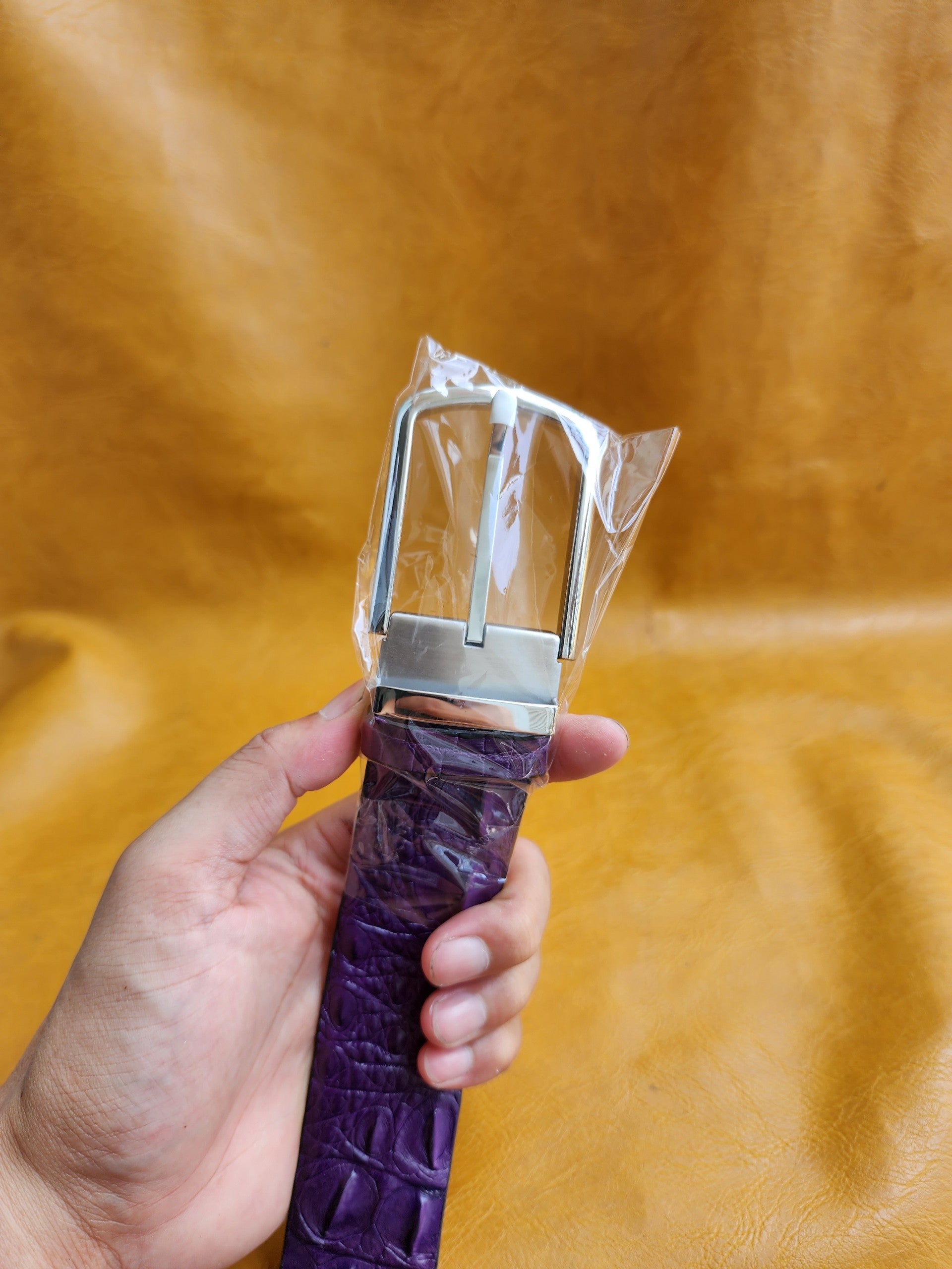 Purple Handmade Geunine Hornback Croco Leather Skin Men Belt Buckle