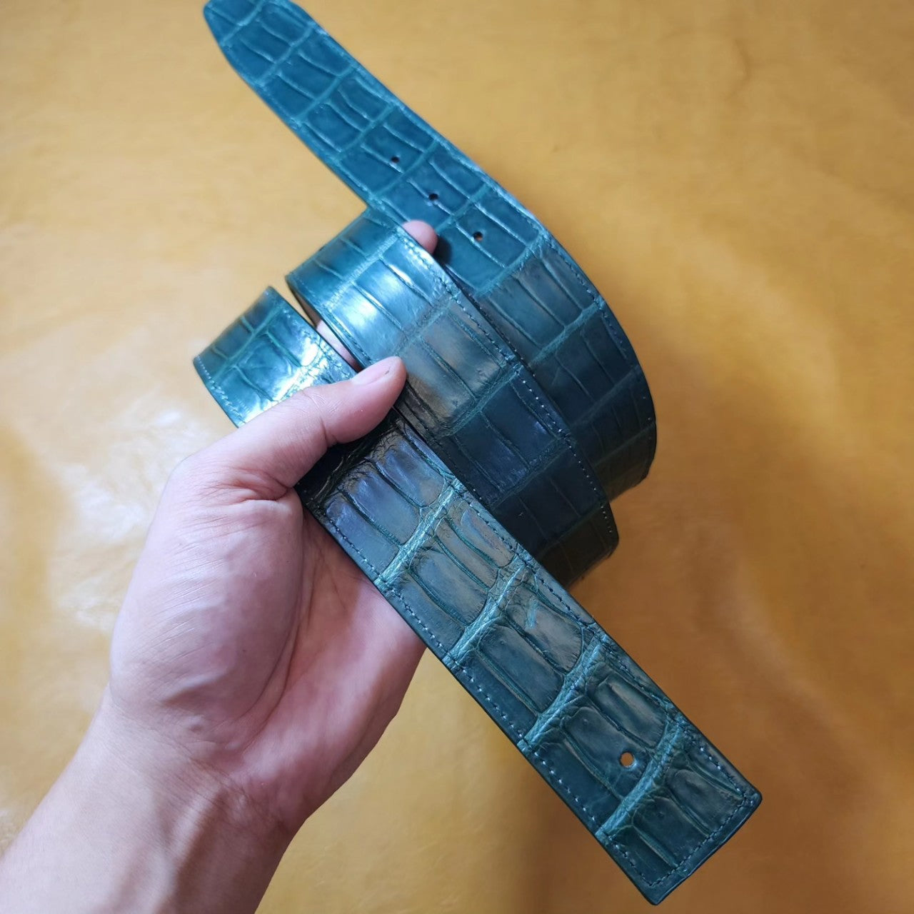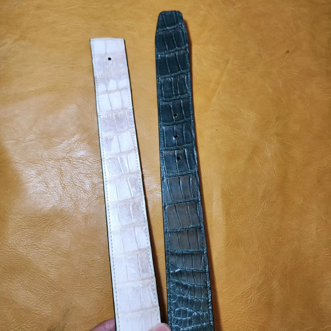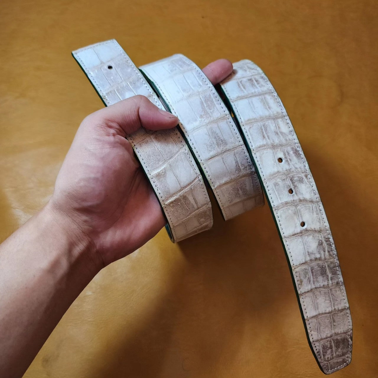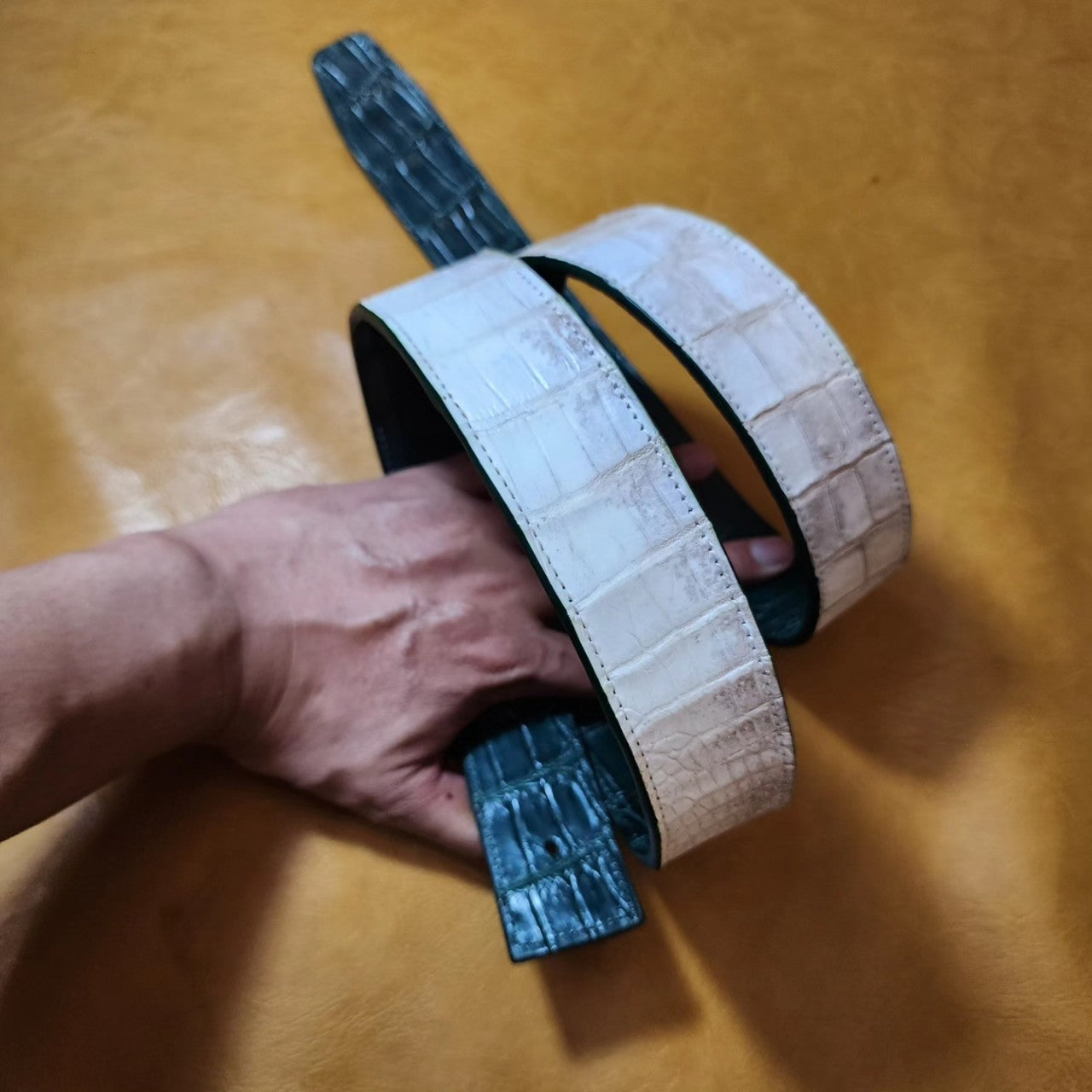 White/Green Doubleside 100% Genuine CROCO Leather Skin Men Belt H Buckle
