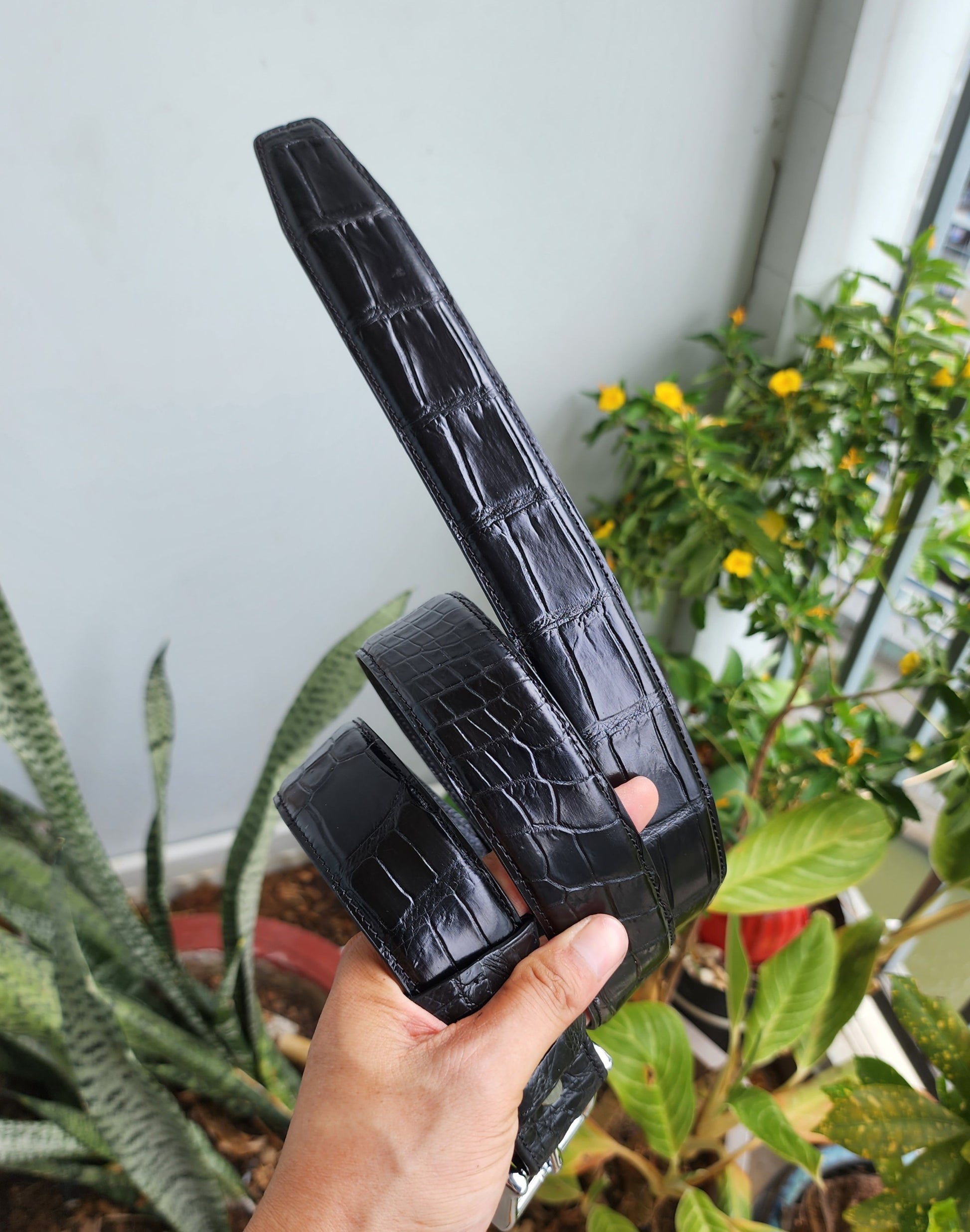 Black Handmade 100% Genuine Crocodile Leather Skin Men Belt Buckle